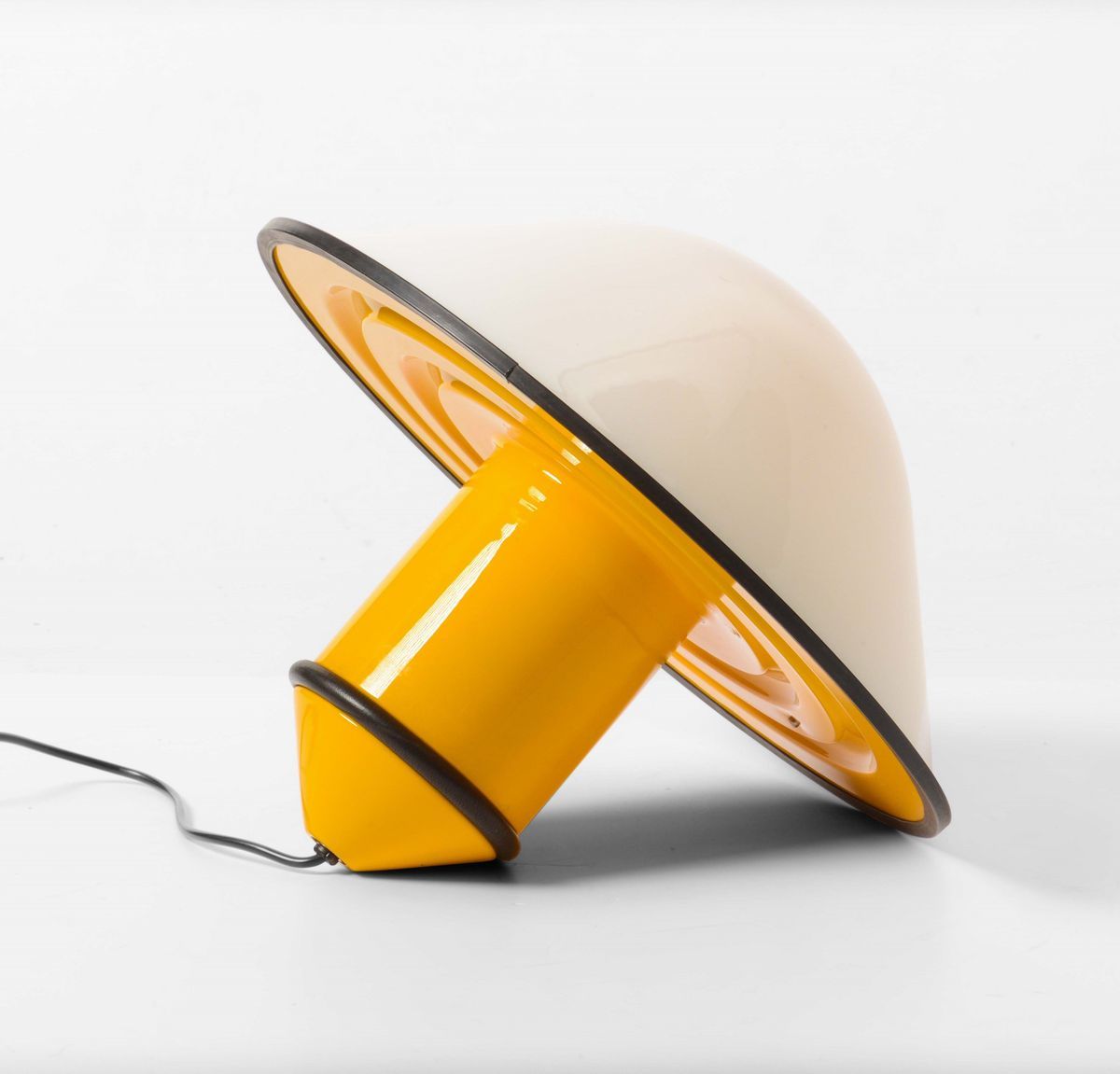 Lampada da tavolo con struttura in metallo laccato e diffusore in perspex.