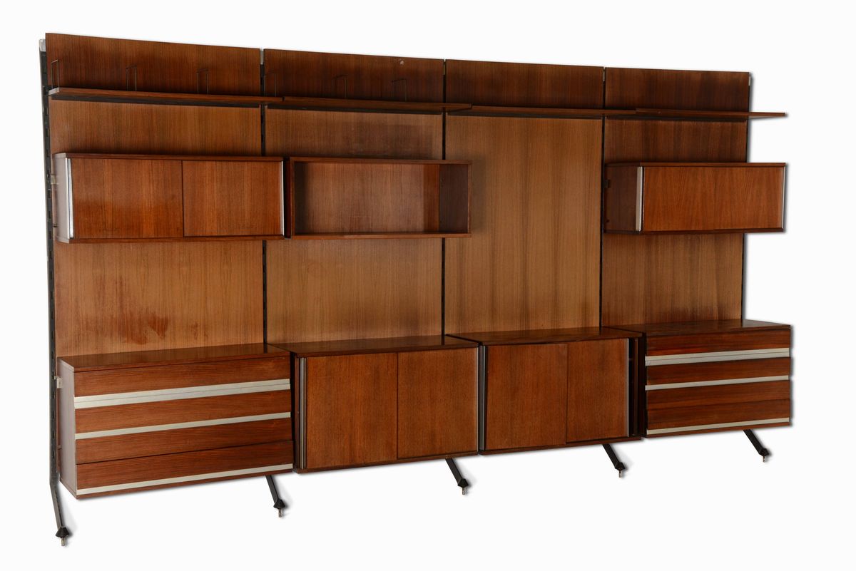 Libreria a parete modulare con struttura in metallo e legno. Marchio originale.