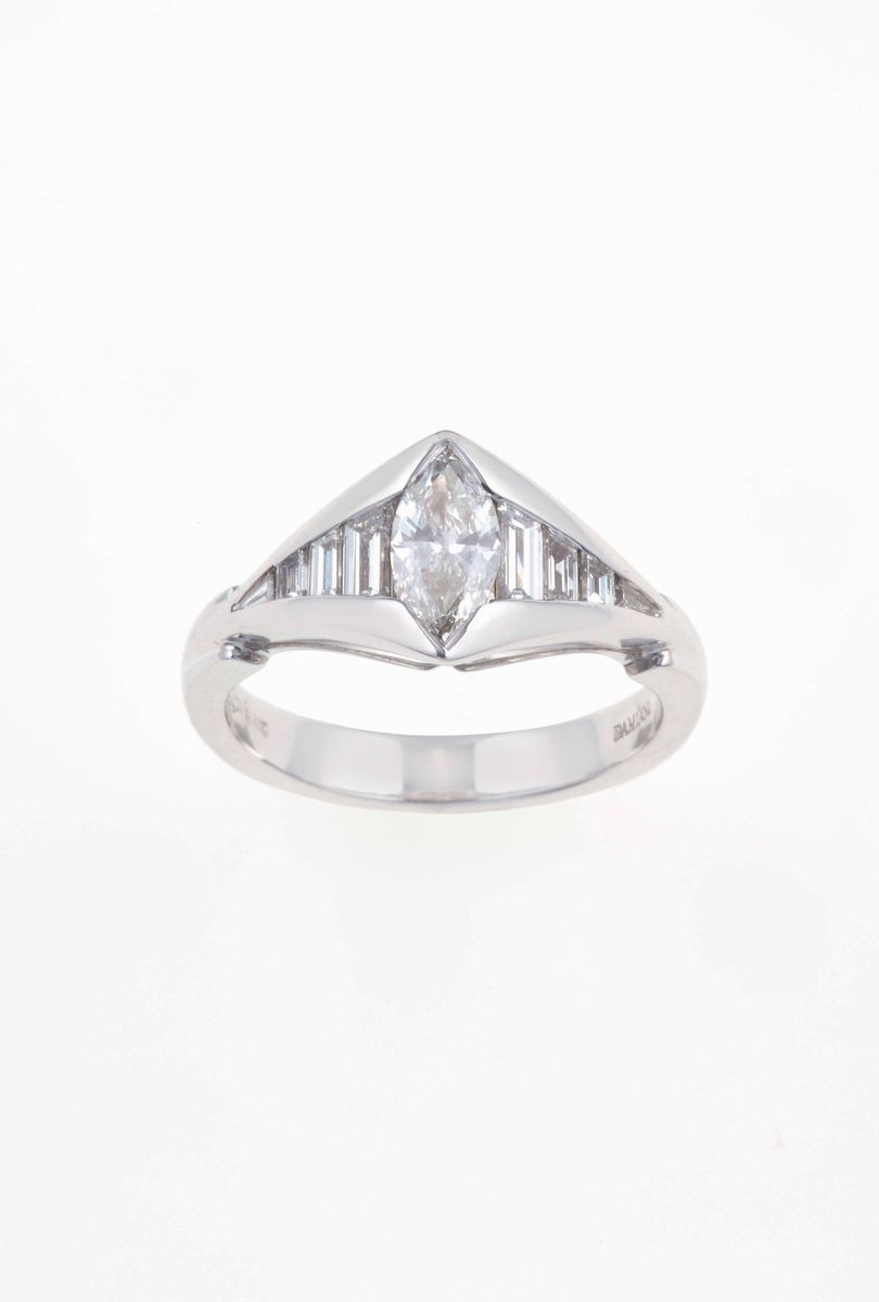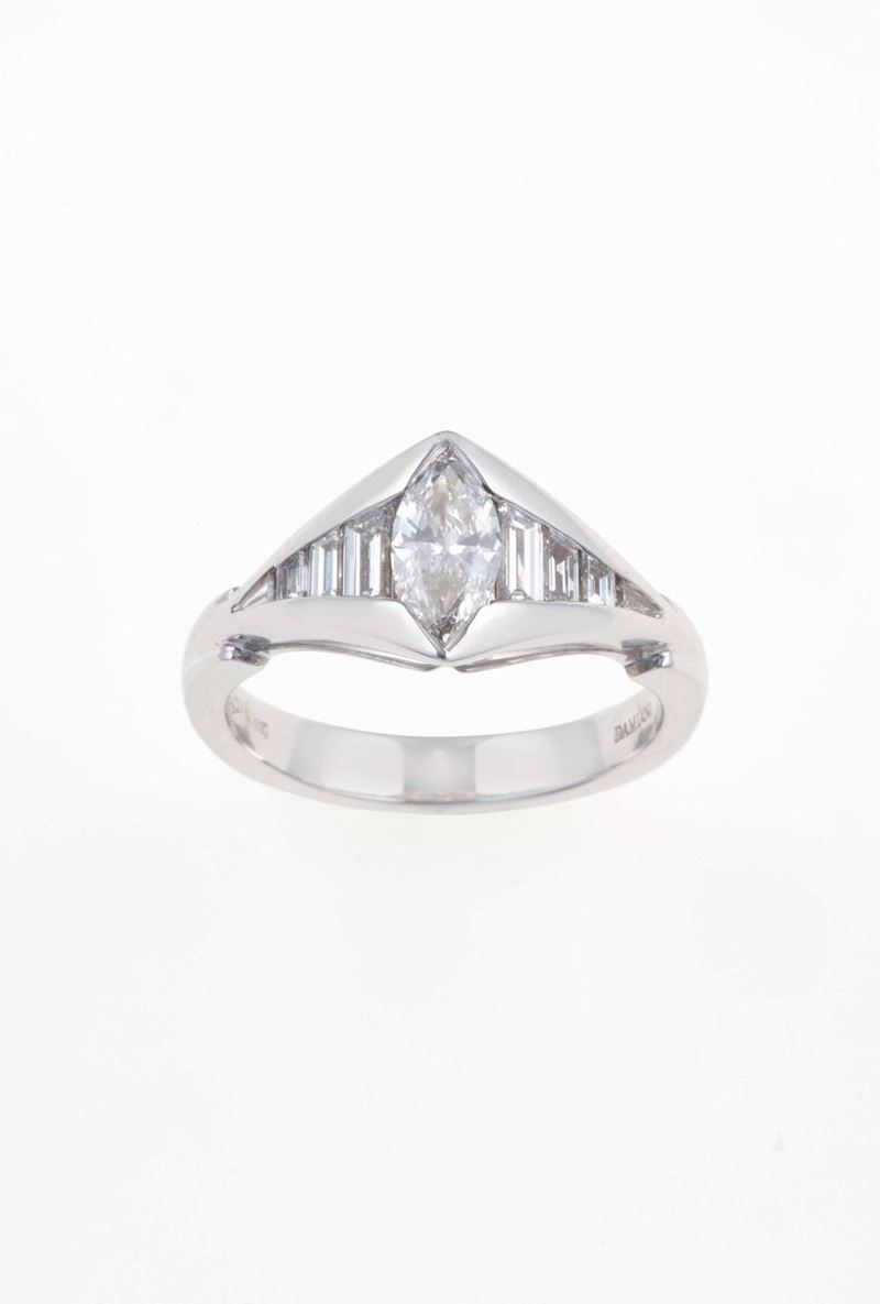 Damiani. Anello con diamante centrale, taglio navette, di ct 0.50 circa