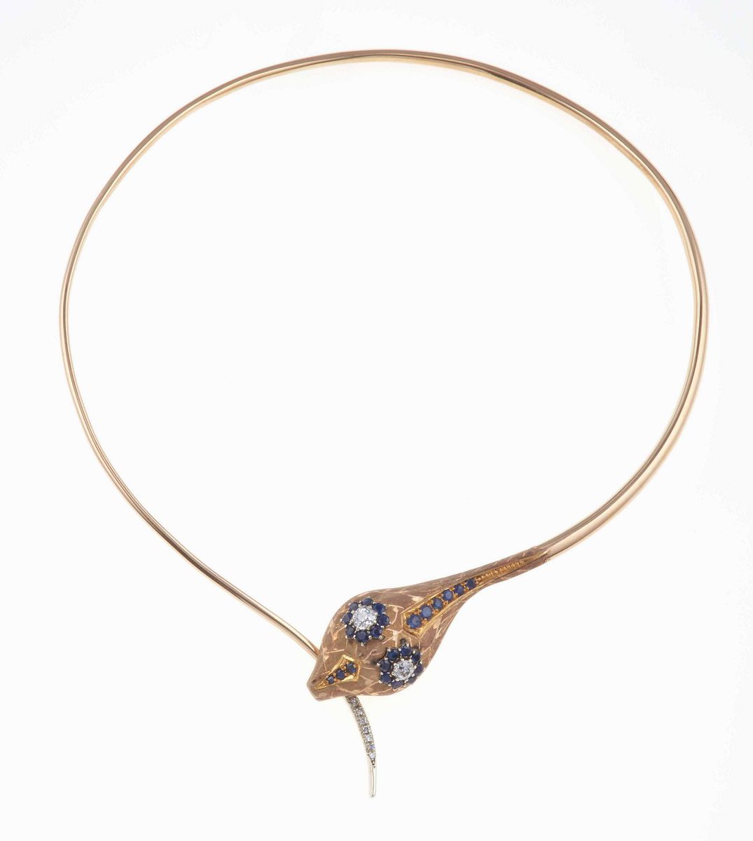 Girocollo rigido serpente con diamanti e zaffiri