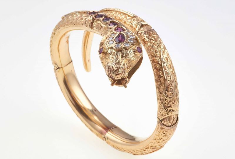 Bracciale “serpente” con granati e diamanti