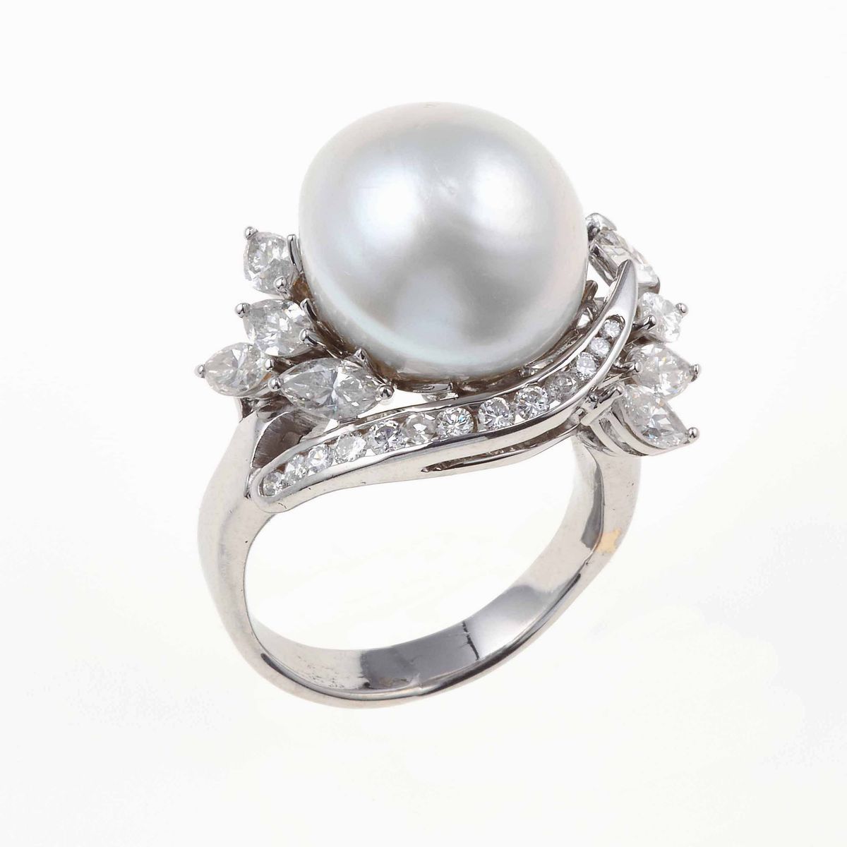Anello con perla coltivata e diamanti