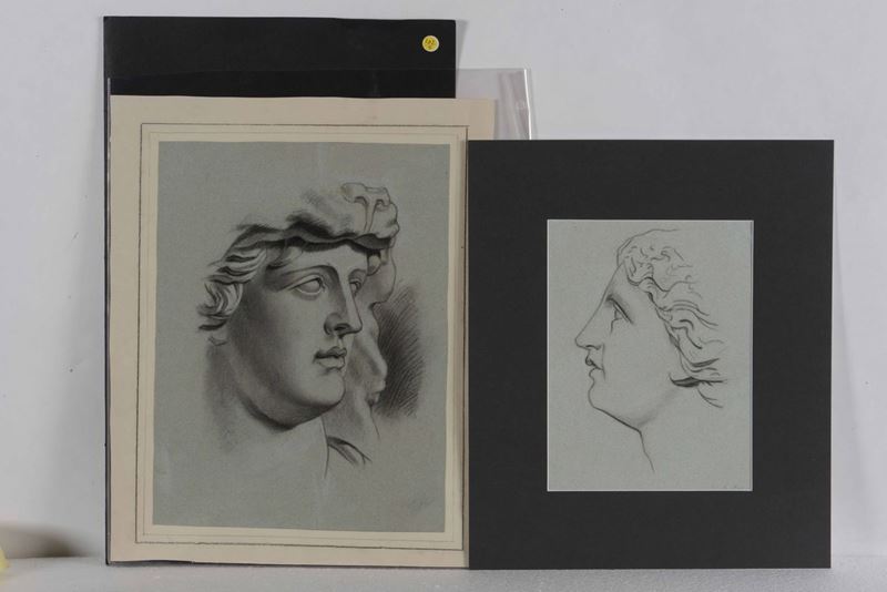arboncino su carta azzurra, i più piccoli cm 20x27 ca, il più grande “Testa di Ercole” cm 29x 39. Tutti entro passepartout.