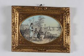 Paesaggio con pittore al cavalletto e curiosi, XIX secolo