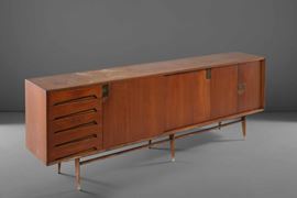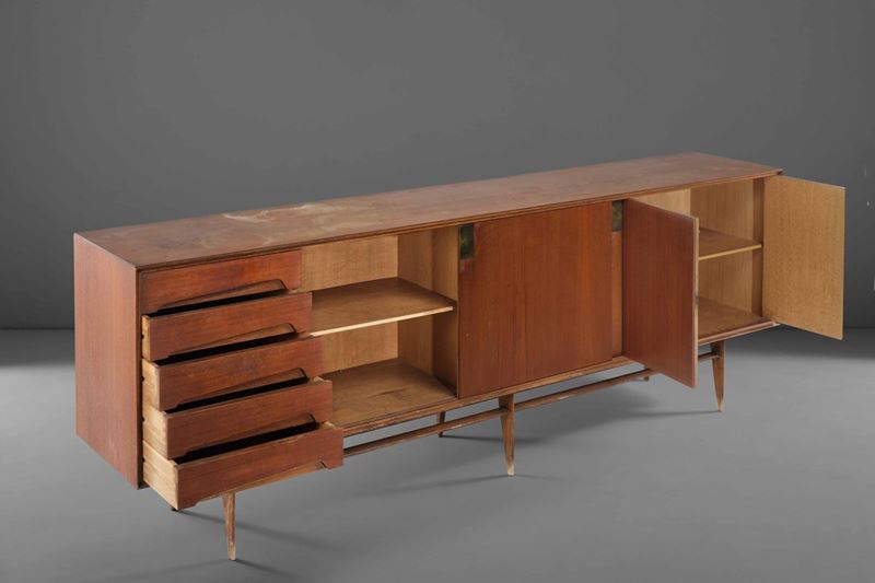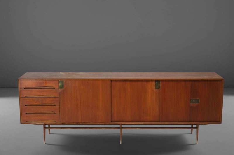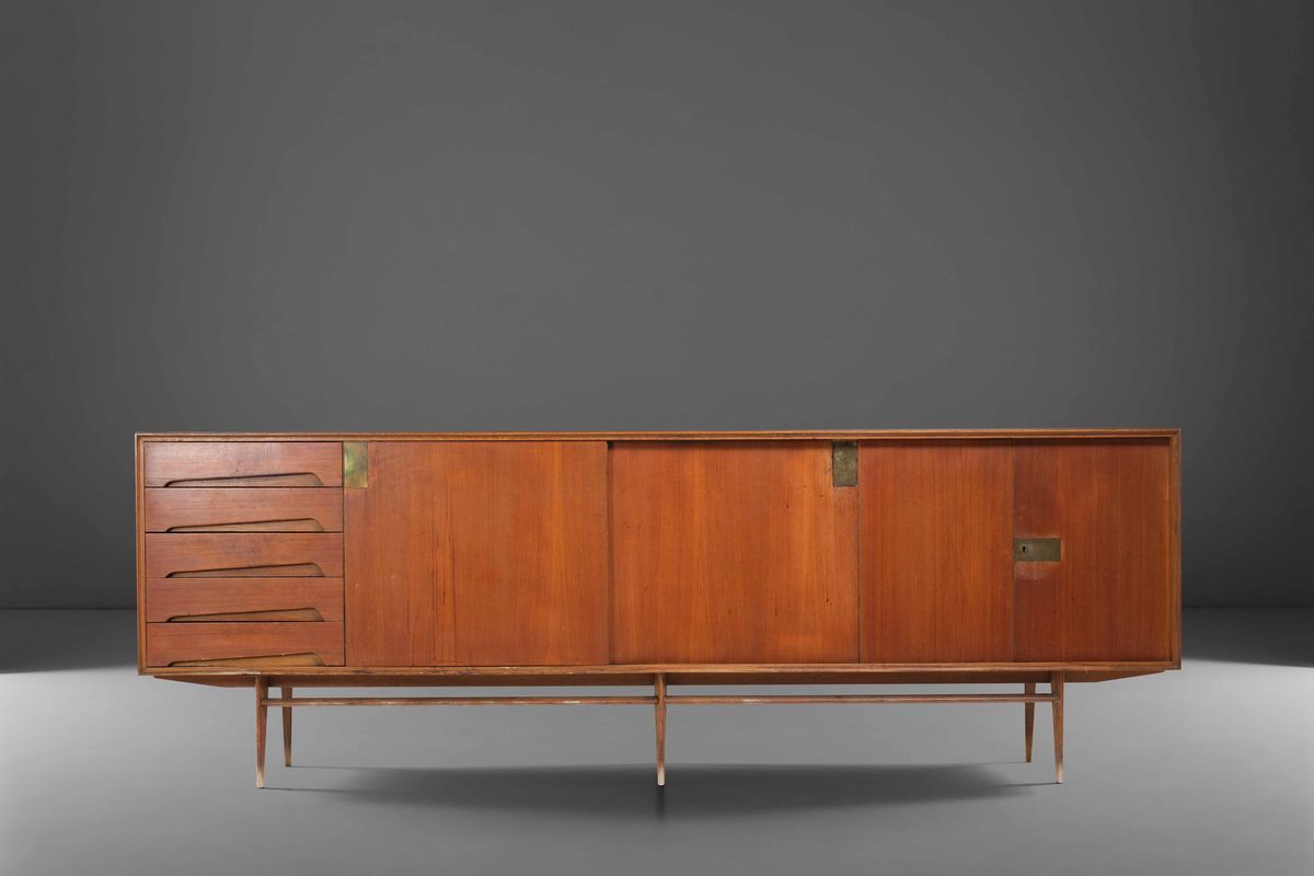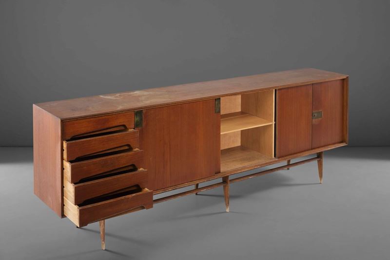 Mobile credenza con struttura in legno e dettagli in ottone. Prod. Dassi, Italia, 1950 ca.
