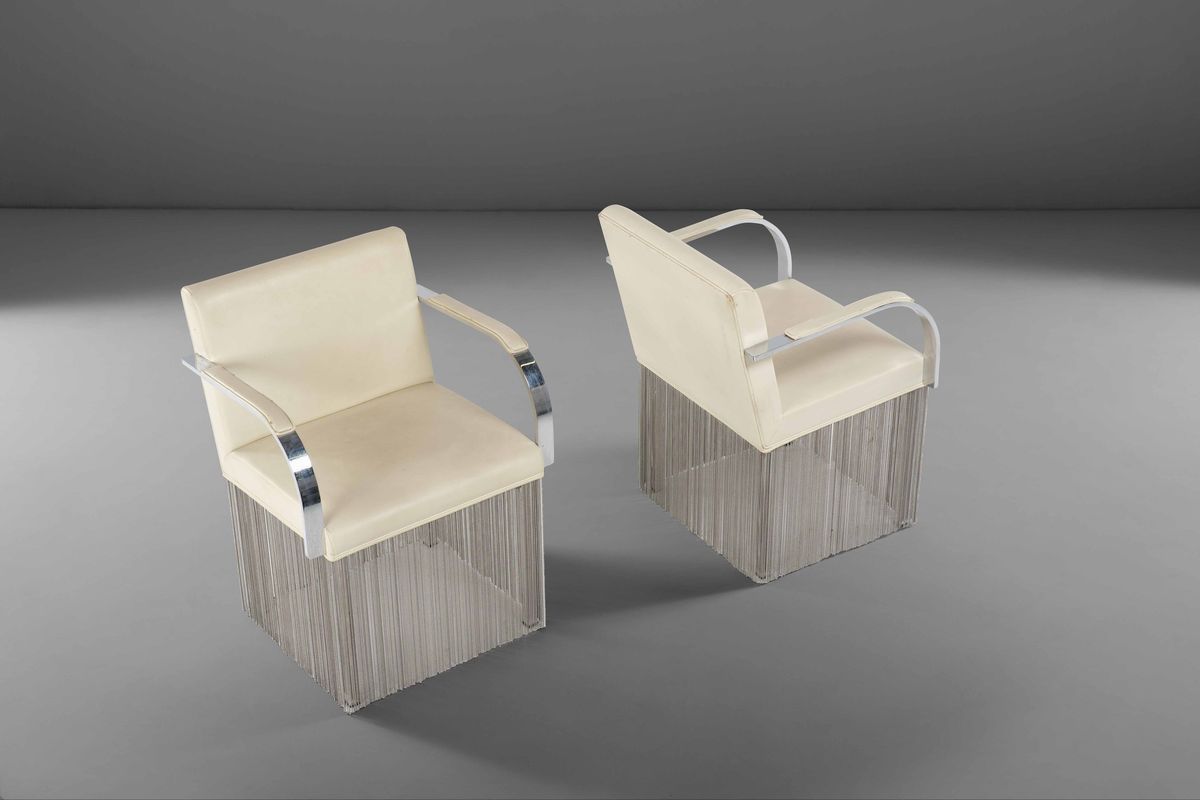 Gruppo di otto sedie con struttura in acciaio e seduta in ecopelle. Serie esclusiva creata per il ristorante Gold di Milano.