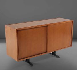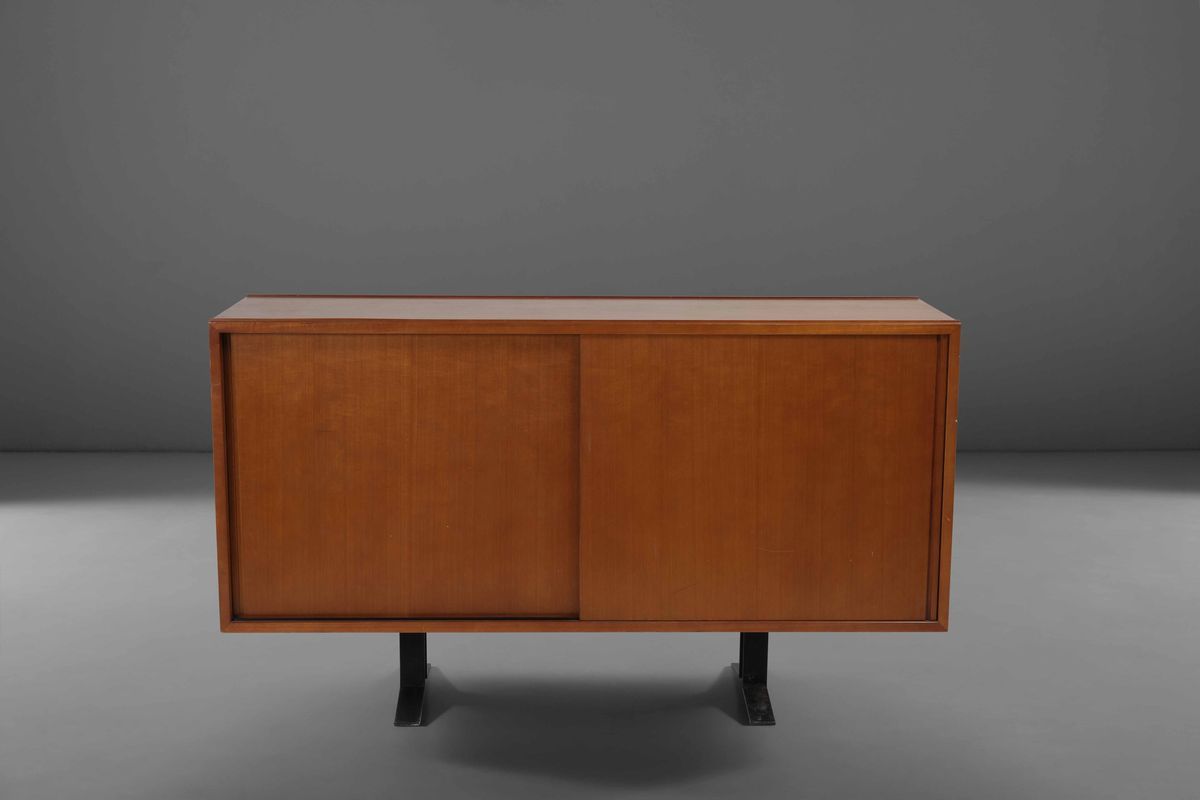 Mobile contenitore mod. SE3 con struttura in legno e sostegni in metallo.