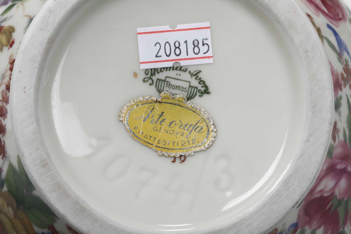 Porcellana. Marca: Thomas Ivory Germany e simbolo della manifattura con Thomas Bavaria, in verde. Altezza massima cm 45,5; altezza minima cm 20. Conservazione: il vaso più alto con due minime sbeccature al bordo inferiore; qualche insignificante usura all'oro
