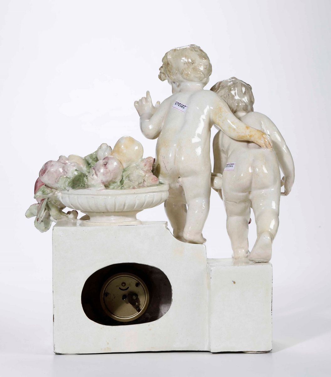 Terraglia. Marca: assente. Dimensioni: altezza cm 39; cm 36x19. Conservazione: mano destra di un putto con restauri; minime sbeccature alle foglie