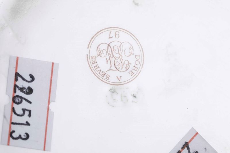 Porcellana. Marca: simbolo grafico della manifattura con “RF” intrecciati “DORE A SEVRES” e 97, in rosso; “S93” in verde; lettere e numeri incisi. Altezza cm 35. Conservazione: ottima