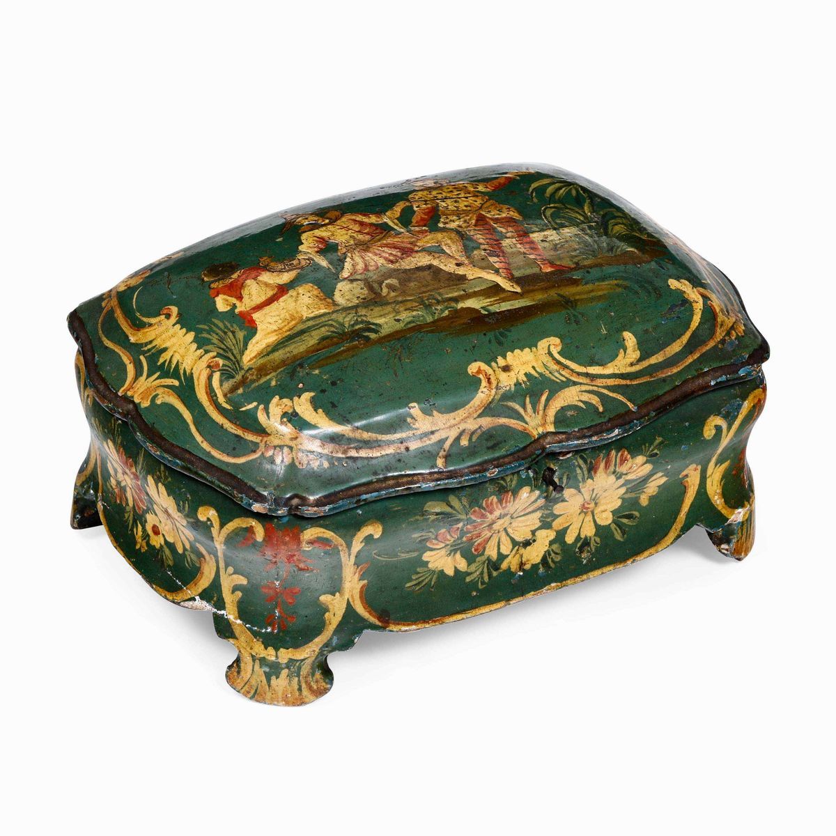Cofanetto Legno sagomato, dipinto, dorato e laccato Arte veneziana del XVIII secolo