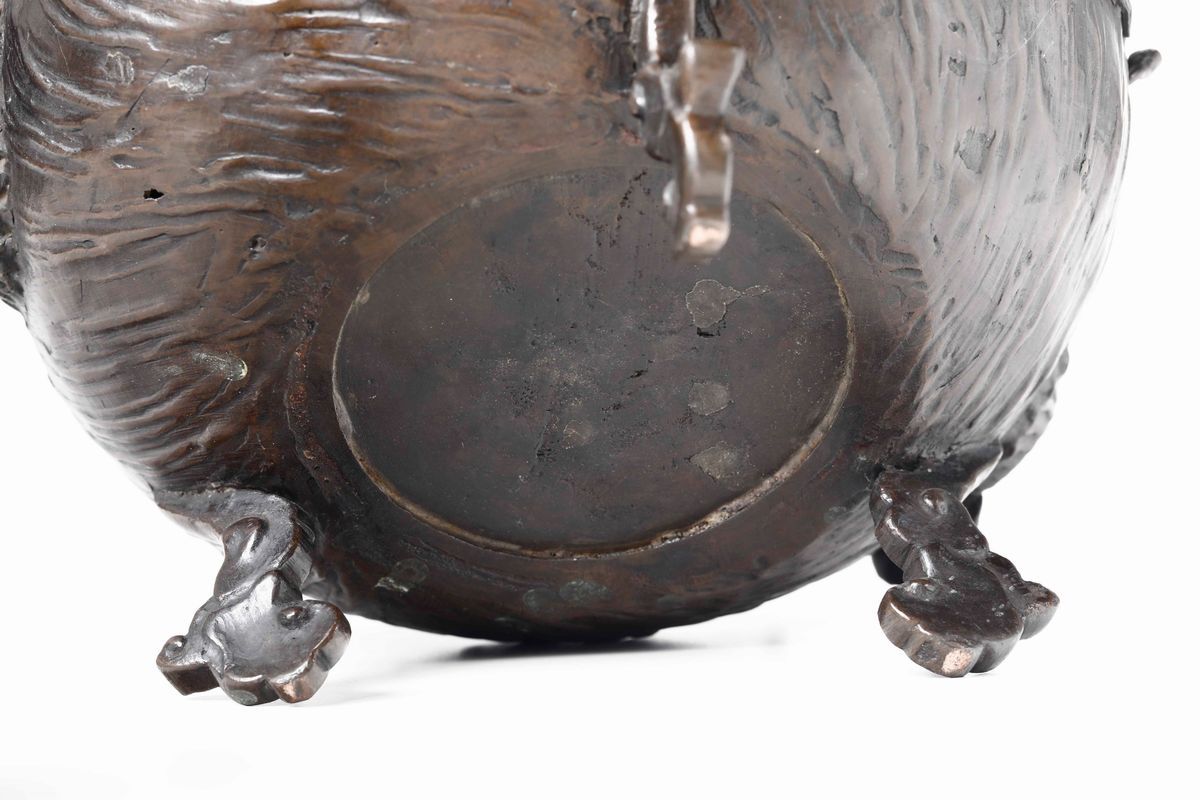 Incensiere in bronzo con anse sagomate, figura di drago a rilievo e con presa del coperchio a foggia di saggio, Giappone
