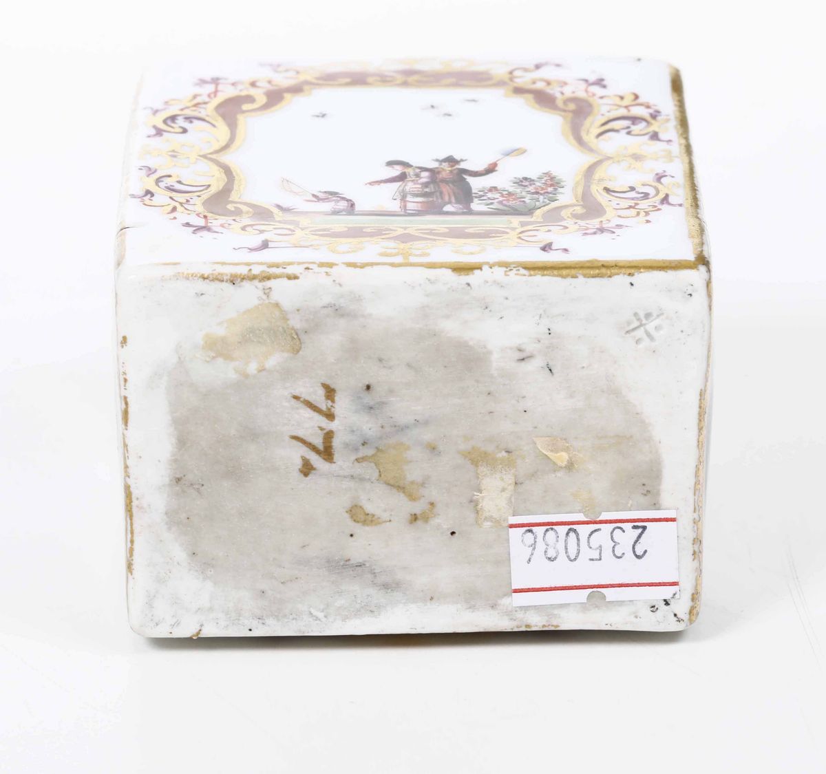 Porcellana. Marca: spade in blu e numero “77.” in oro; croce con 4 puntini incisi per il modellatore Andreas Schiefer. Dimensioni: altezza totale cm 12; cm 7,6 x 5.