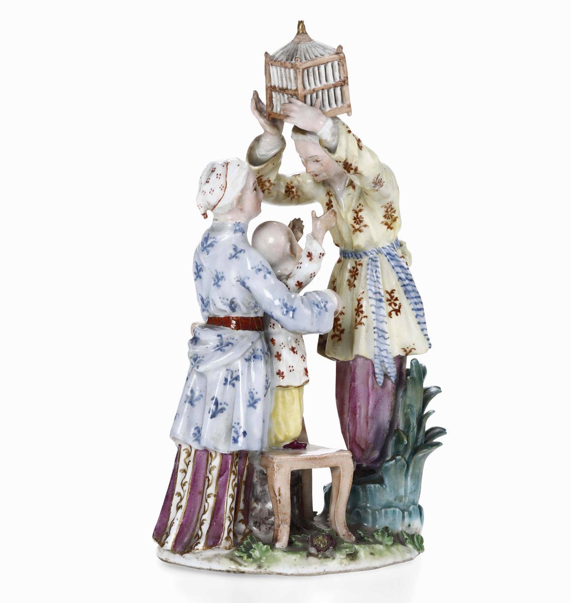 Raro gruppo di famiglia cinese con gabbietta Meissen, 1763-1774 Modello di Peter Reinicke (1715-1768) attivo a Meissen dal [..]
