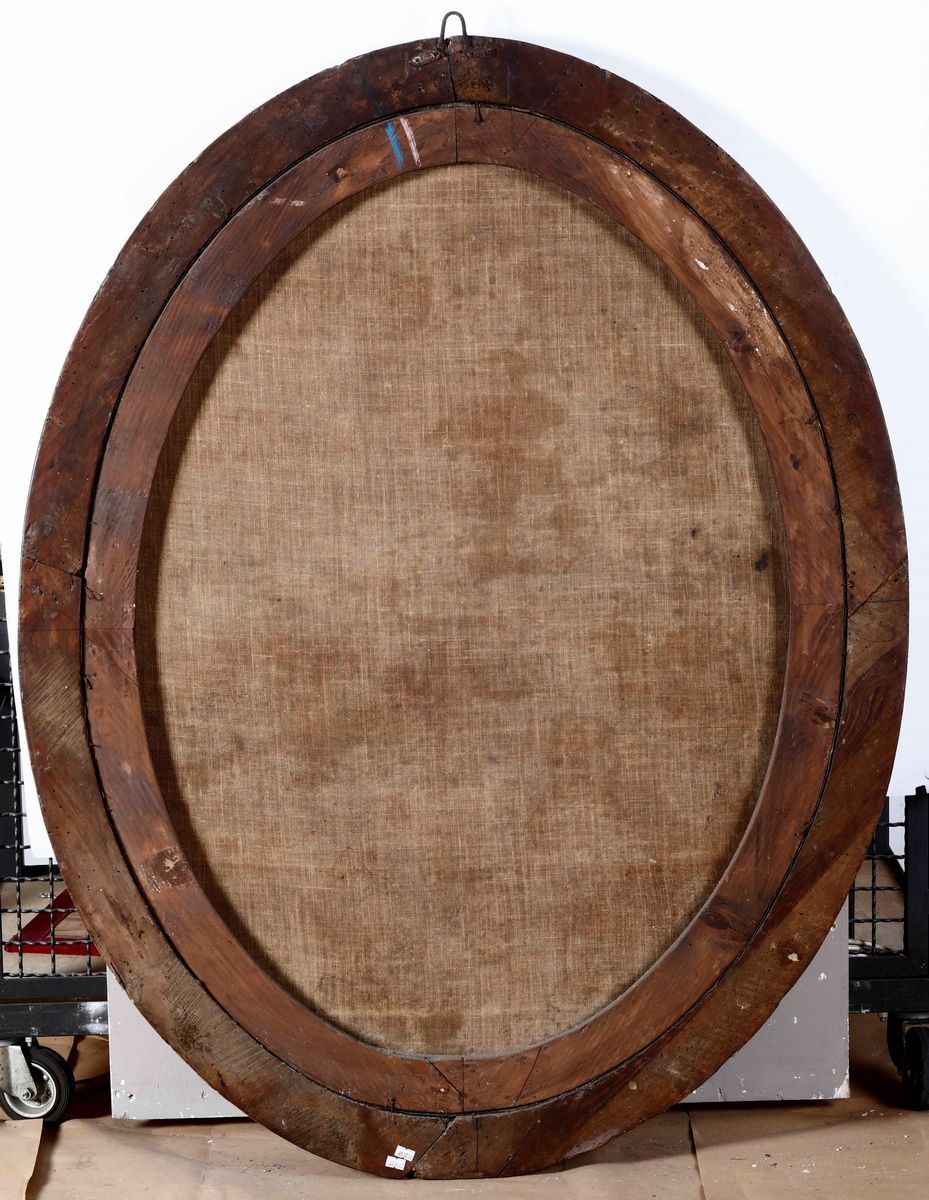 coppia di dipinti ovali a olio su tela, cm 118x88