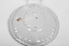 Al lotto si aggiunge un piatto ovale di manifattura bolognese, probabilmente Finck, 1770 circa (dimensioni: cm 49x 35,3; conservazione: insignificanti sbeccature al bordo)