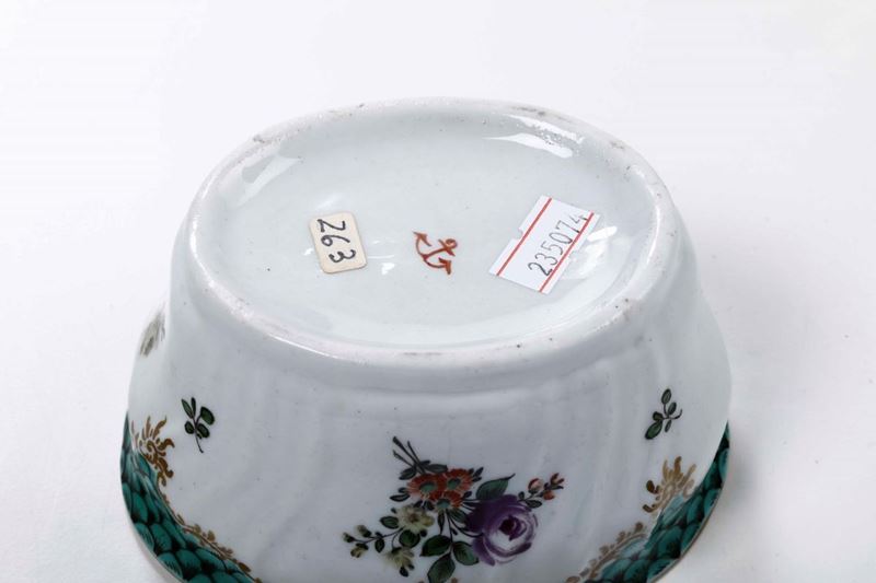 Porcellana. Marca: ancora in rosso. Dimensioni: altezza cm 11,4. Conservazione: ottima. Provenienza: “Col. Gatti Casazza Venezia” come da etichette cartacee sotto il coperchio