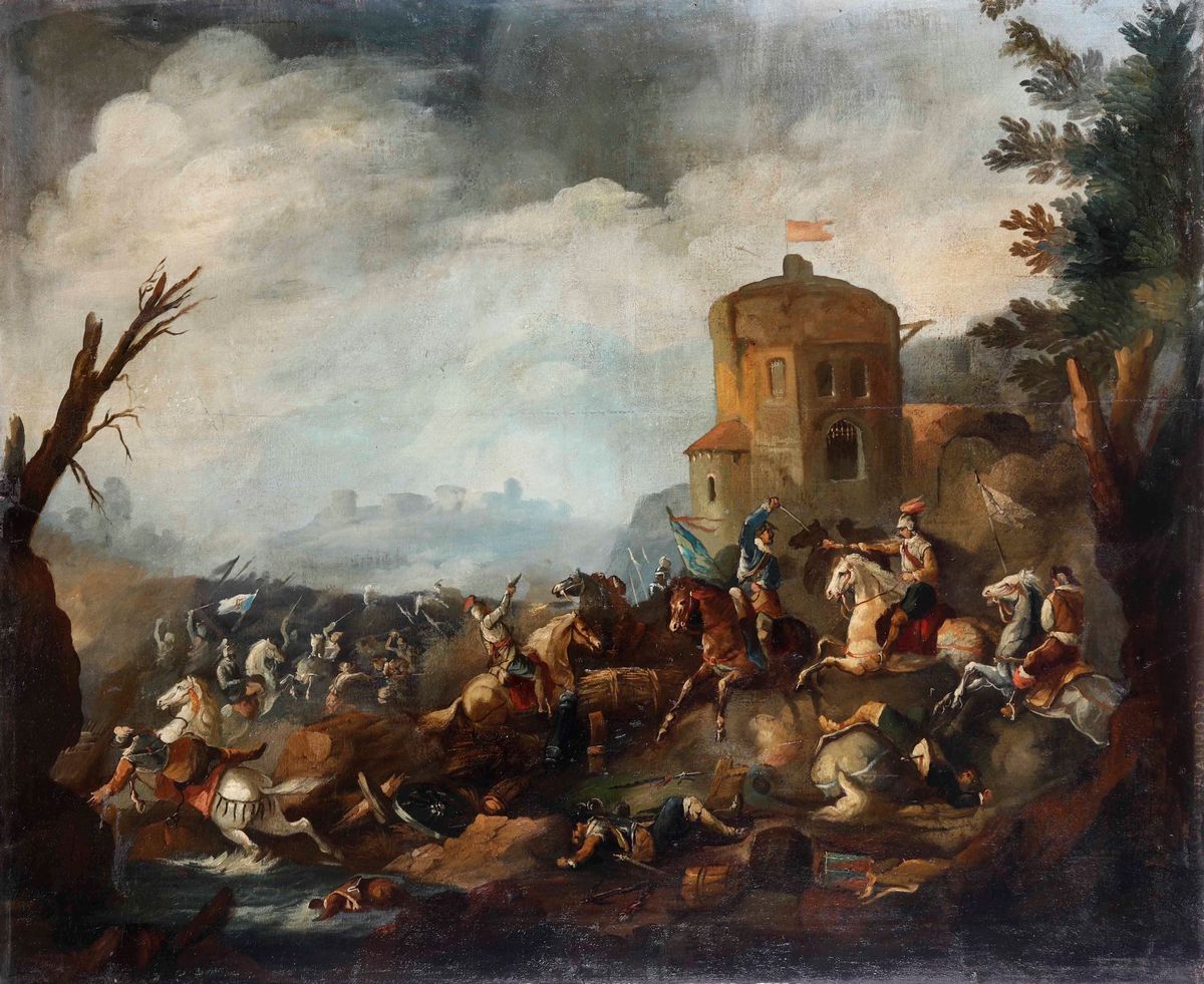 Artista del XIX secolo Scontro di cavalleria