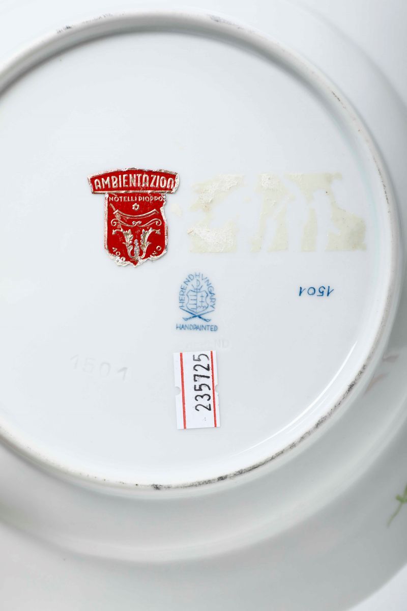 Porcellana policroma. Marca: simbolo grafico della manifattura in blu; numero “1501” in blu e impresso. Diametro cm 24,5. Conservazione: ottima