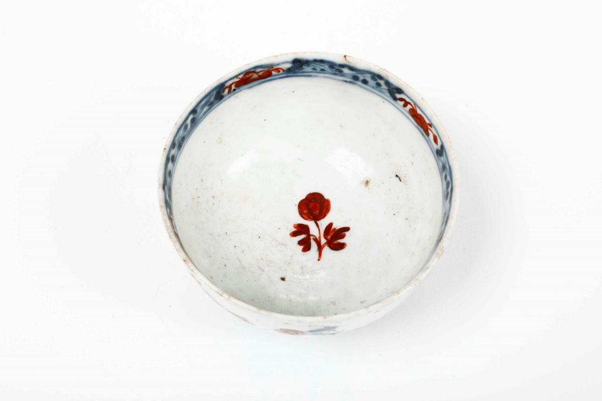 Porcellana policroma blu e rosso. Marca: assente. Altezza tazza cm 4; diametro piattino cm 11,6. Conservazione: ottima