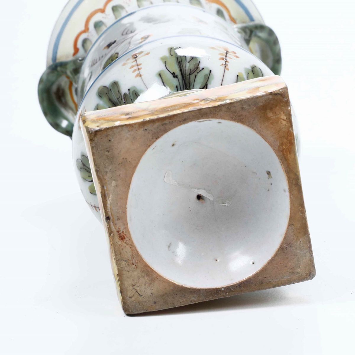 Maiolica policroma. Marca: assente. Altezza cm 21,3 circa. Conservazione: estesi restauri