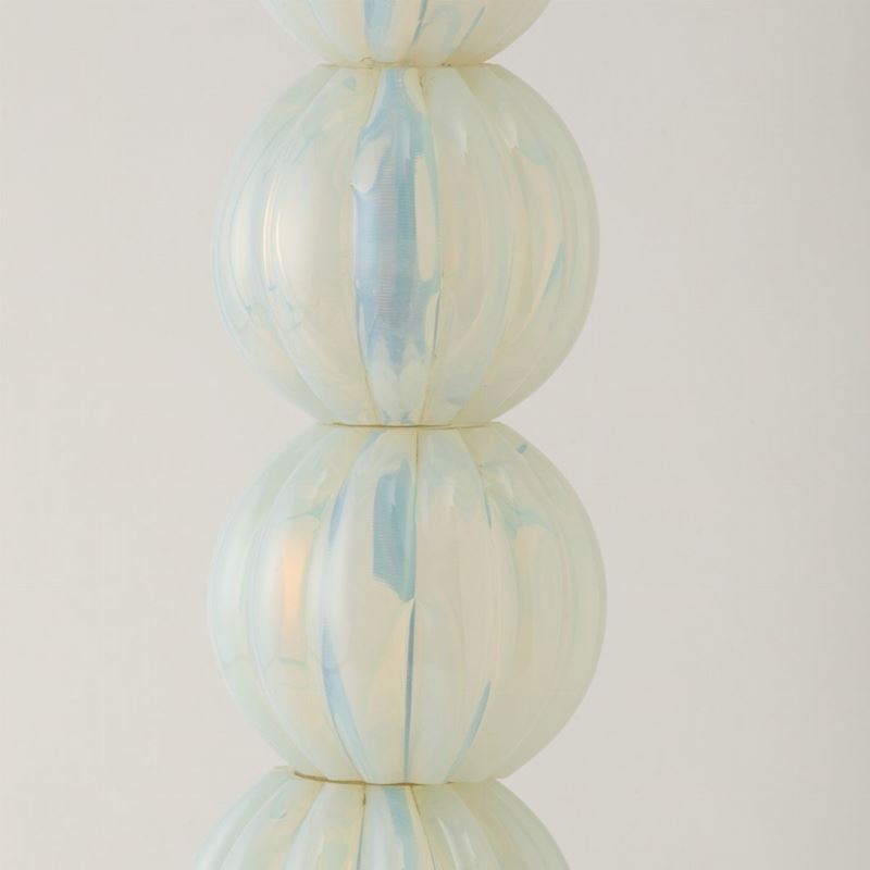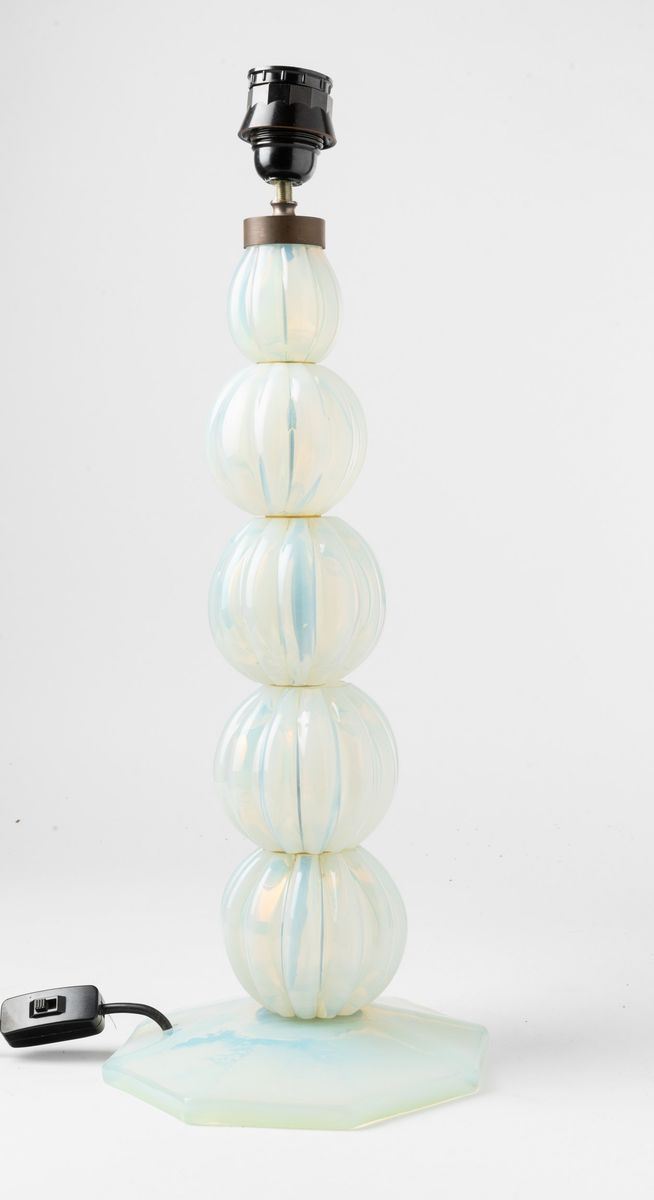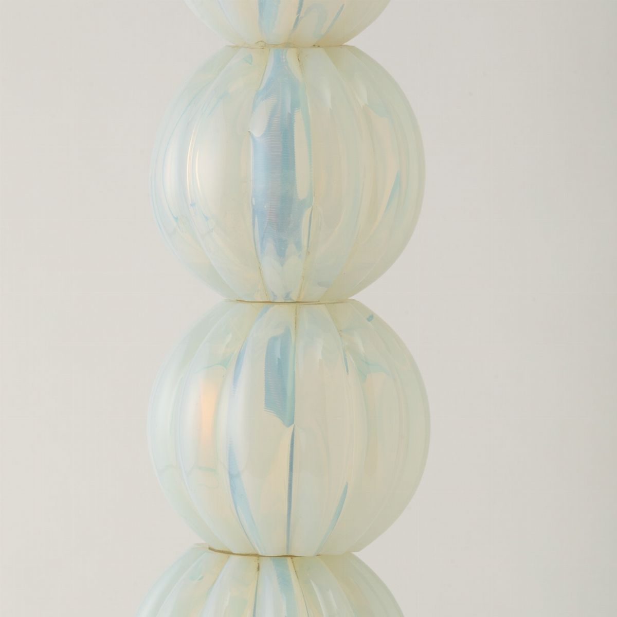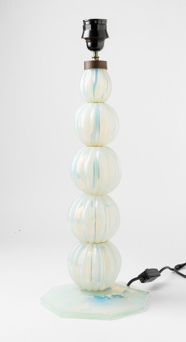 Base di lampada formata da sfere costolate in vetro opalescente su base ottagonale.