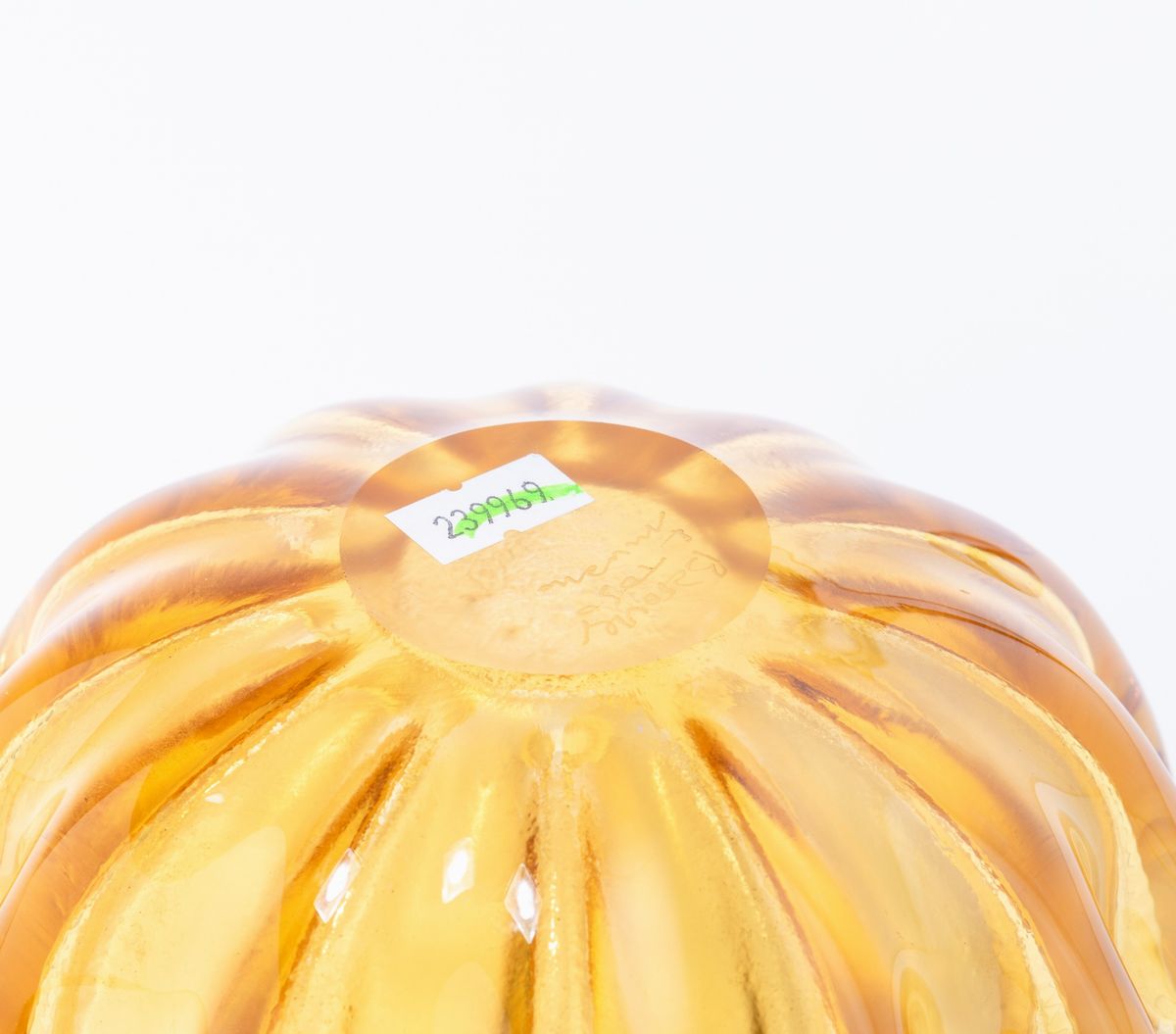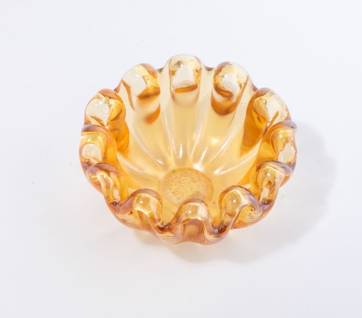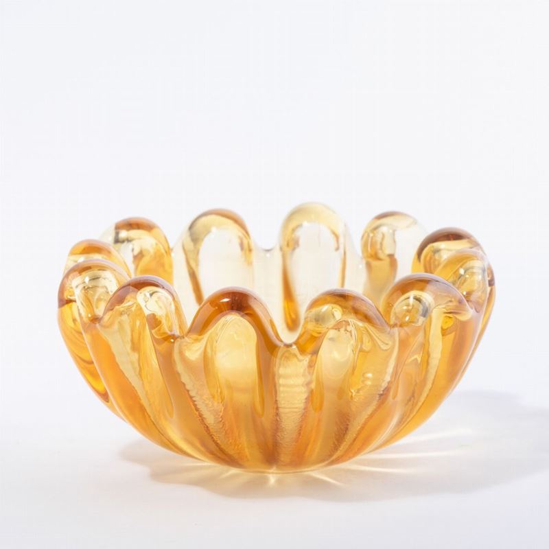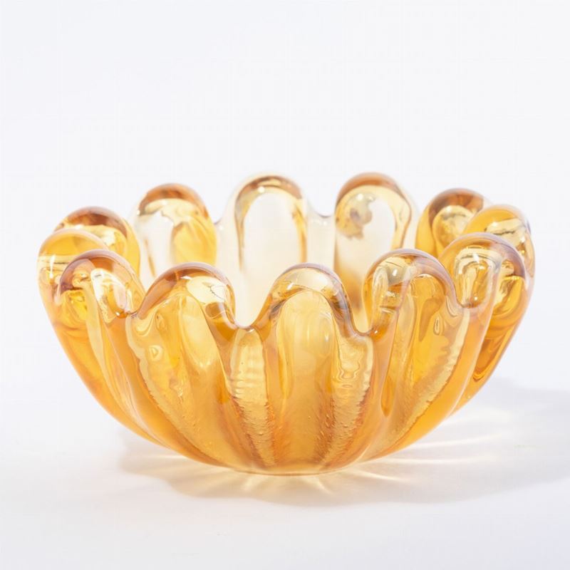 Coppa in vetro soffiato a stampo a grandi costolature.