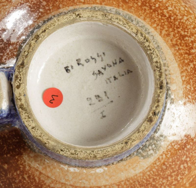 Bibliografia: F. M. Rosso, Per virtù del fuoco. Uomini e ceramiche del Novecento italiano, Aosta 1983, p. 26