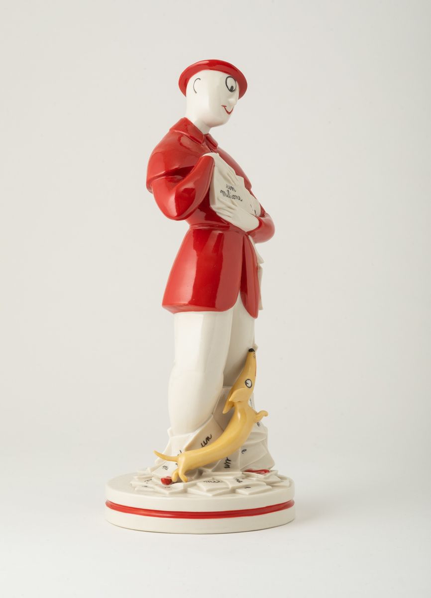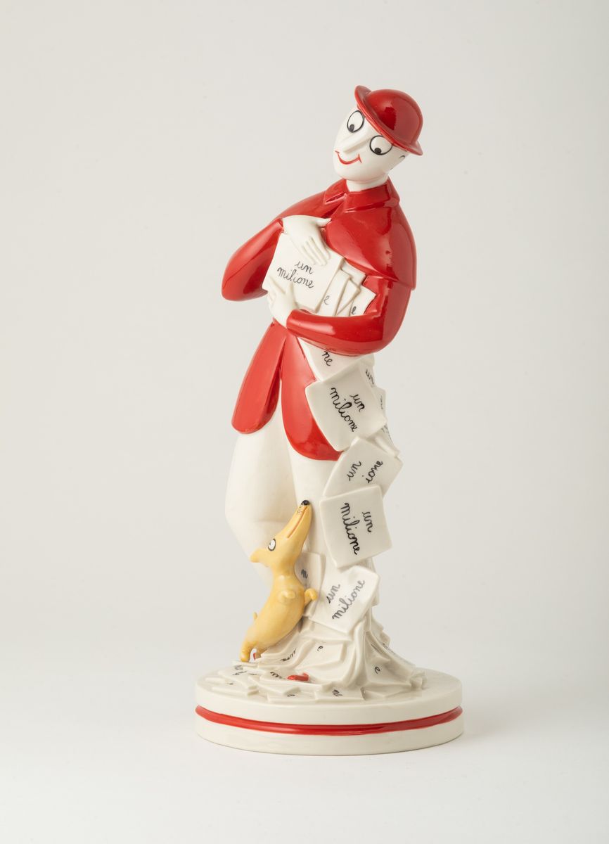 Figura rappresentante il Signor Bonaventura in porcellana modellata a stampo con decoro in policromia.