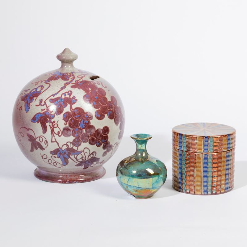 Un salvadanaio firmato Lega, una scatola a lustri firmata Vignoli e un vasetto Gatti.