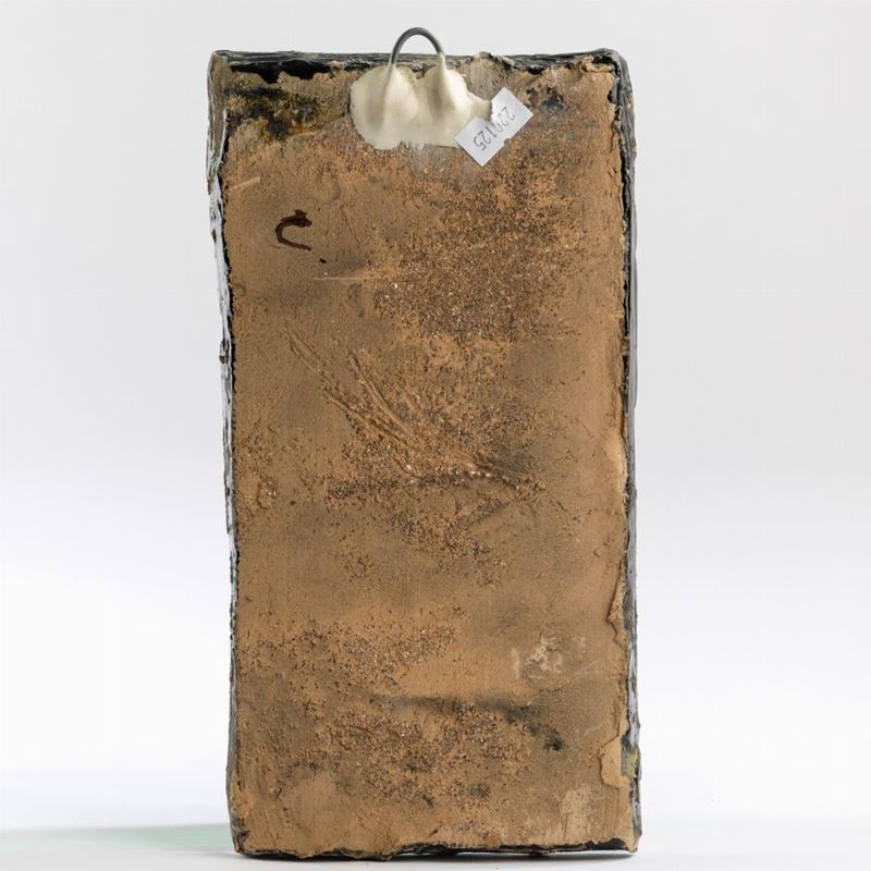 Formella da via crucis in terracotta smaltata.
