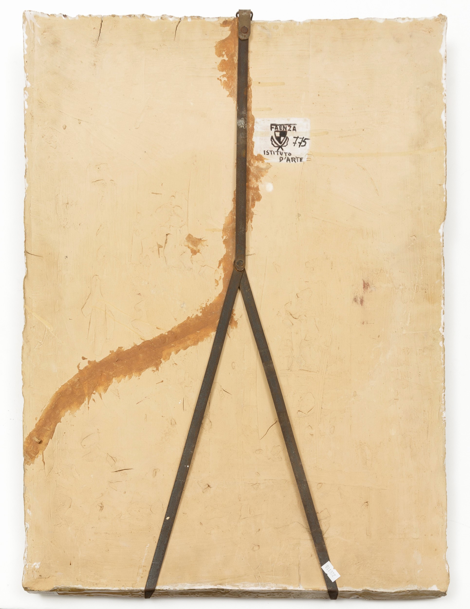 Grande placca a bassorilievo raffigurante profilo egizio in terracotta maiolicata con decoro policromo.