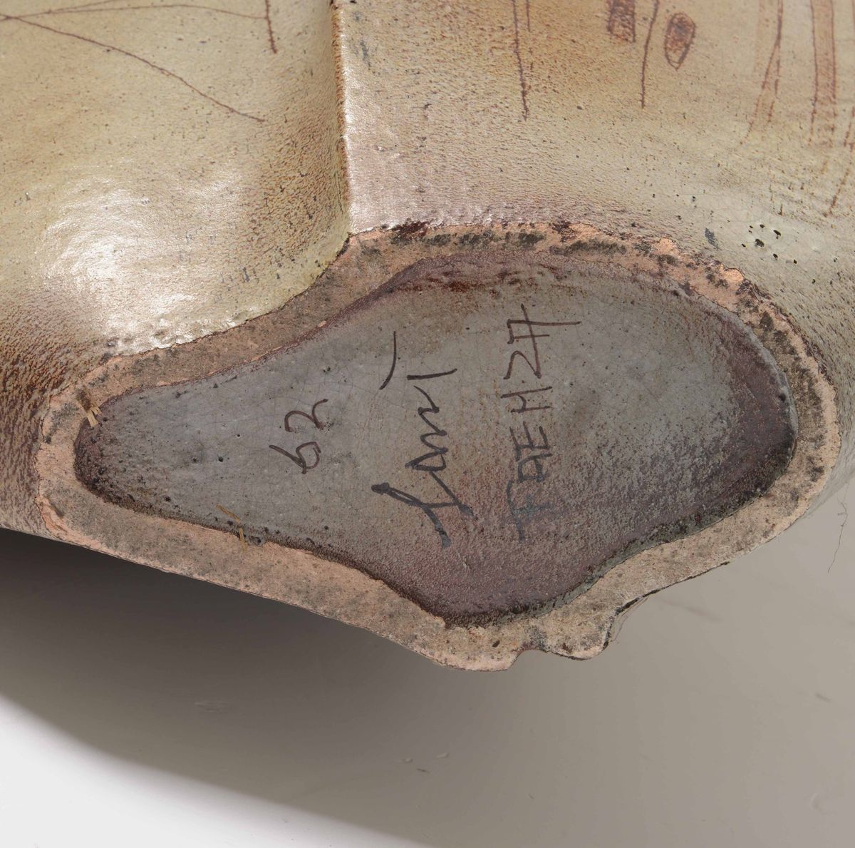 Grande vaso romboidale con apertura a fessura in gres con decoro astratto.