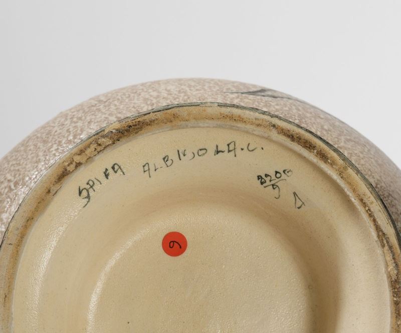 Bibliografia: F. M. Rosso, Per virtù del fuoco. Uomini e ceramiche del Novecento italiano, Aosta 1983, p. 70
