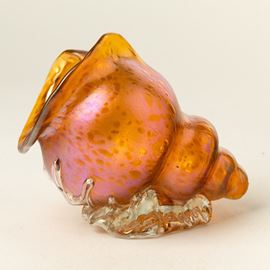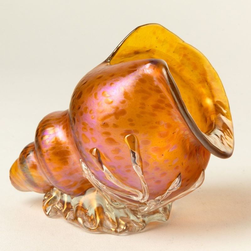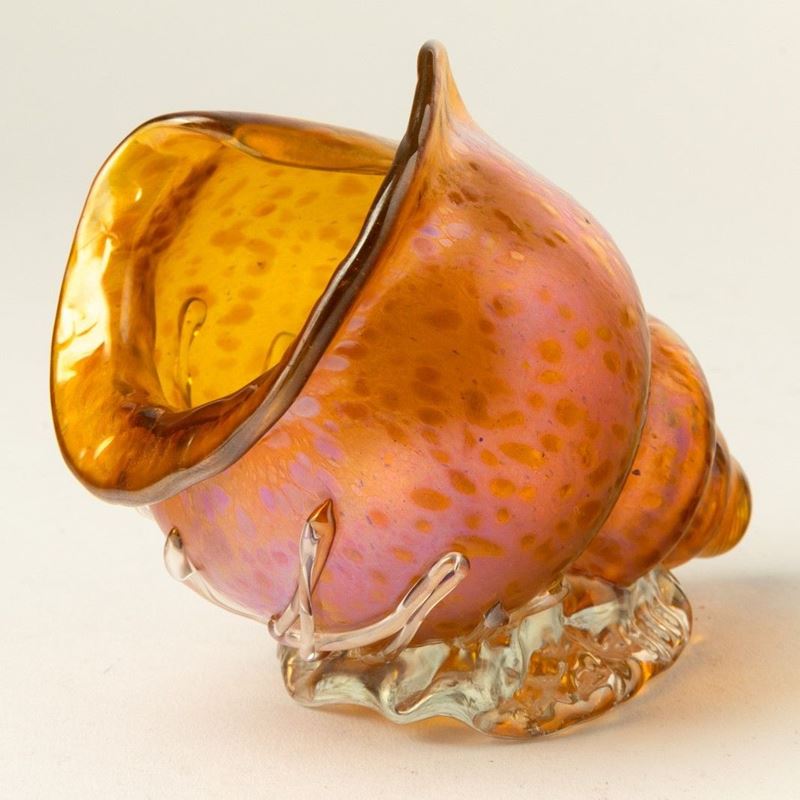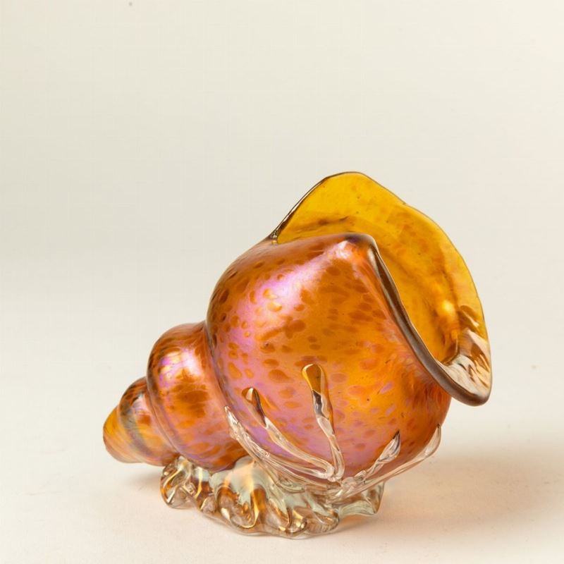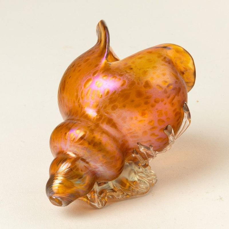 Conchiglia in vetro iridato con decorazione alle polveri firma indecifrabile incisa
