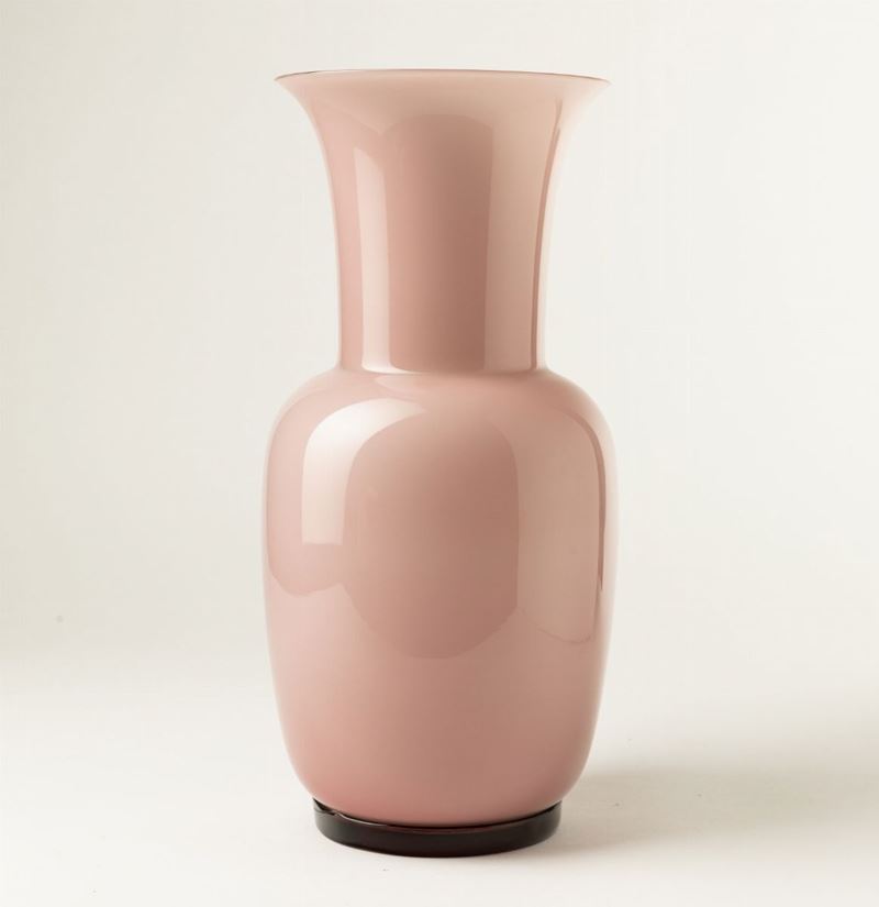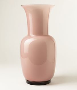 Vaso in vetro opalino incamiciato con piede a cordolo.
