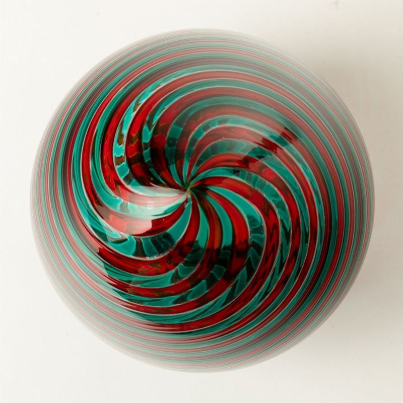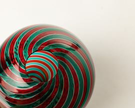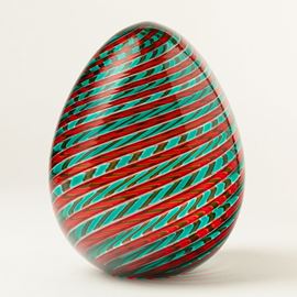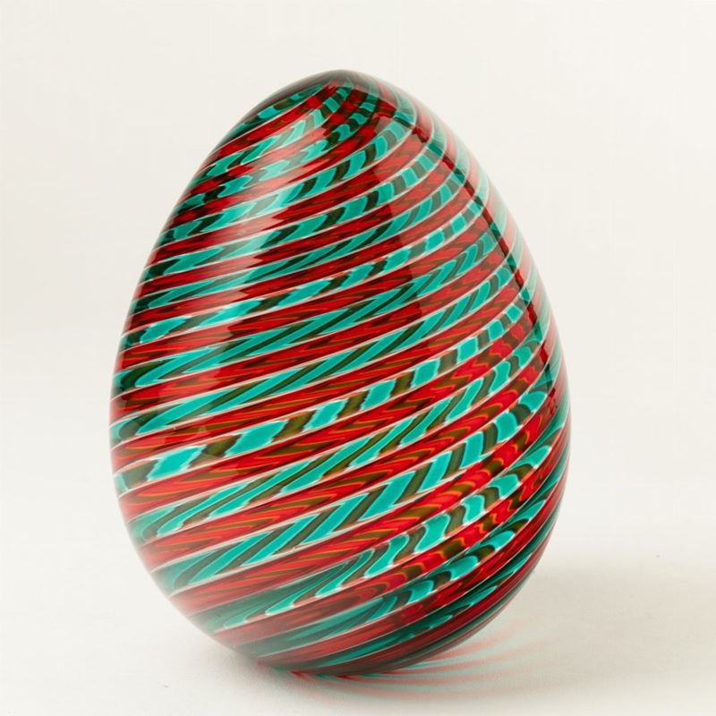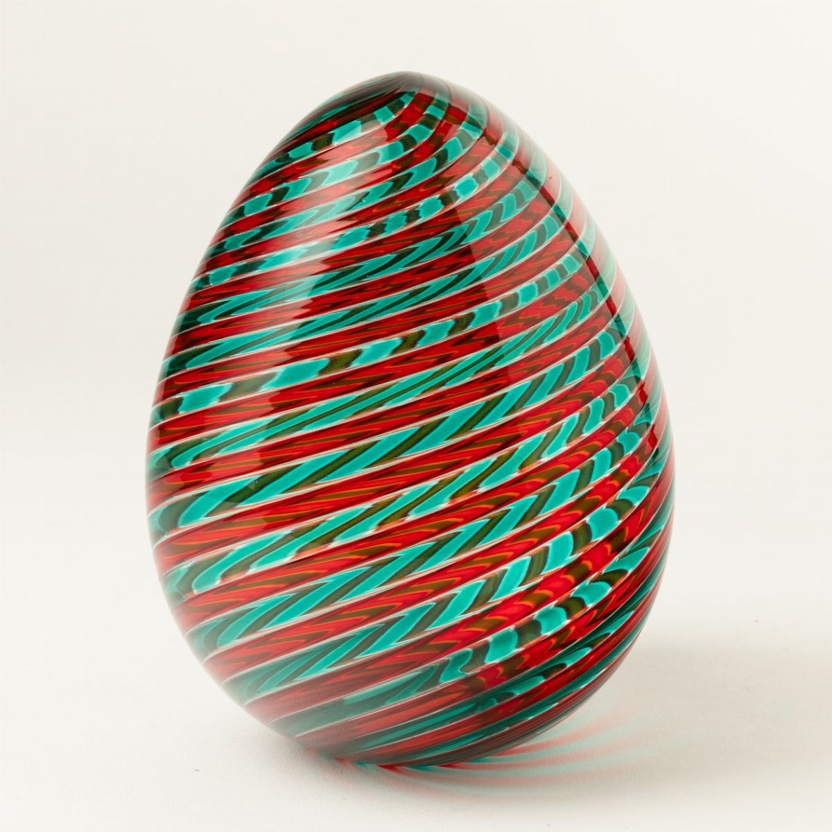 Soprammobile in forma di uovo con decoro di canne policrome ritorte.