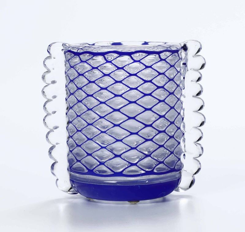 Gobelet in vetro con rombi blu, Murano, XX secolo