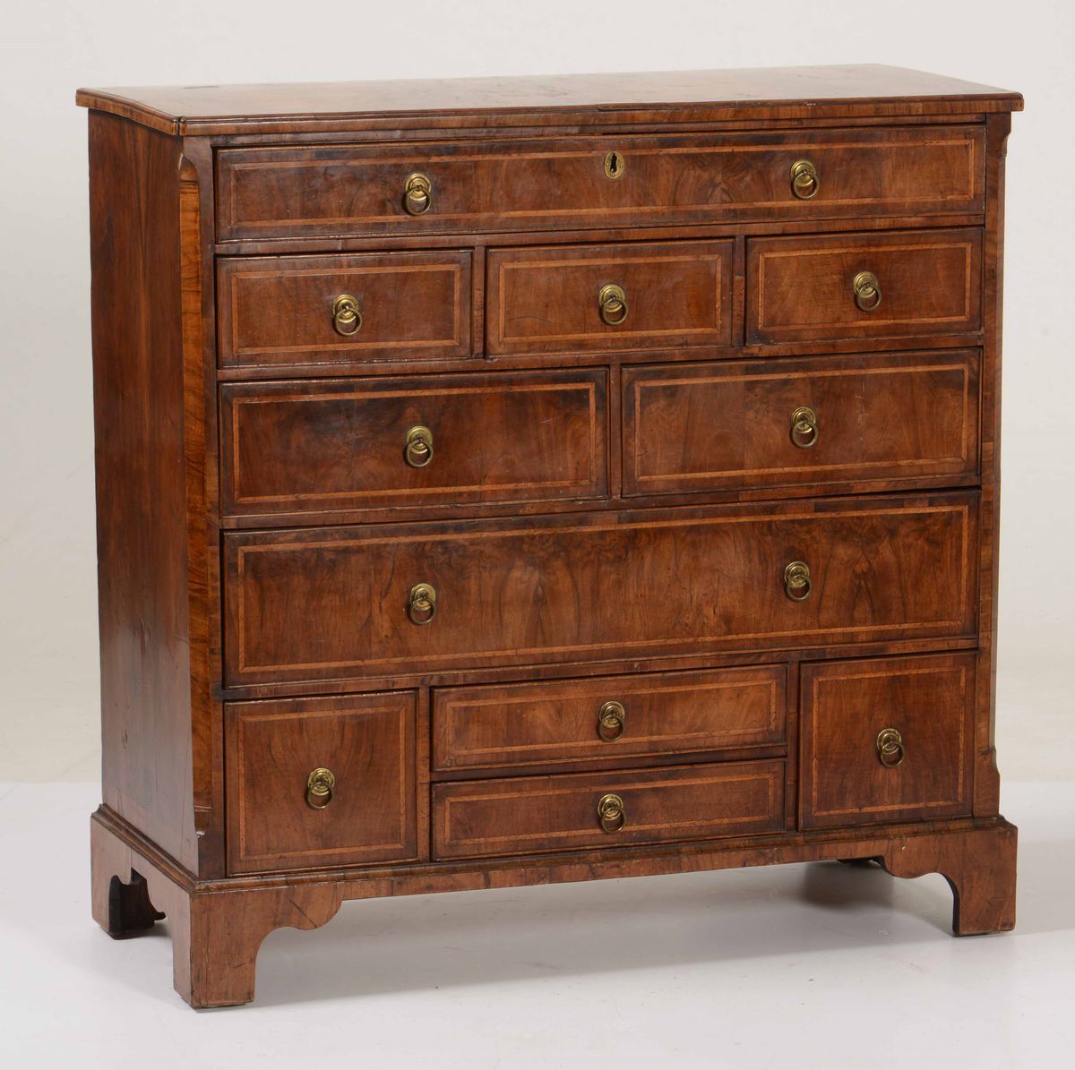 Piccolo comò in legno lastronato e filettato, XIX-XX Secolo