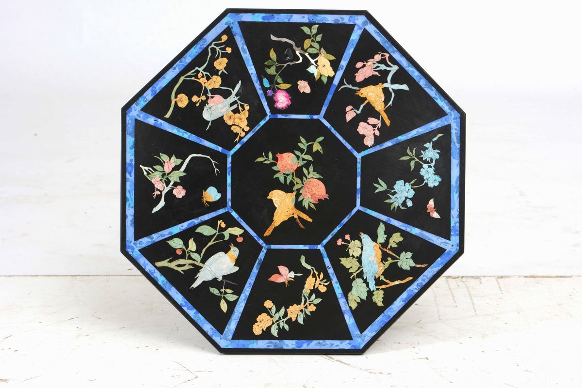 Tavolino con piano ottagonale in scagliola