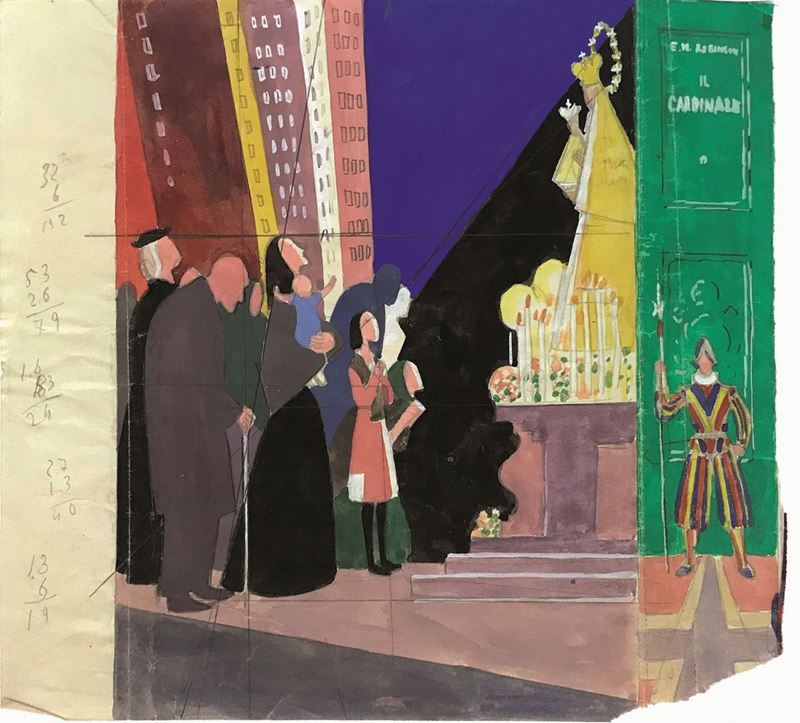 Bozzetto per copertina di libro originale, 1952. Matita e tempera su carta. Cm 22x24.