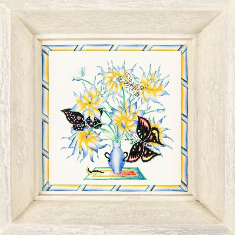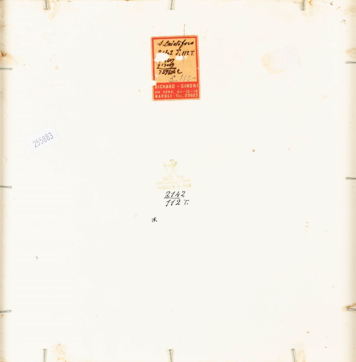 Grande placca decorativa in terraglia con decoro di bouquet di fiori in vaso a smalti policromi
