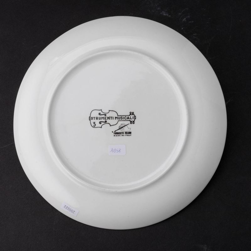 Piatto serie Strumenti musicali in terraglia con decoro serigrafato e dipinto a mano