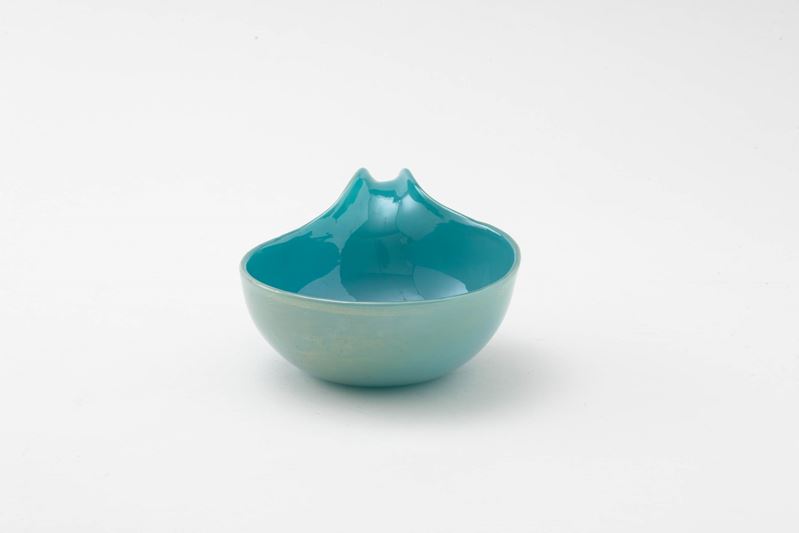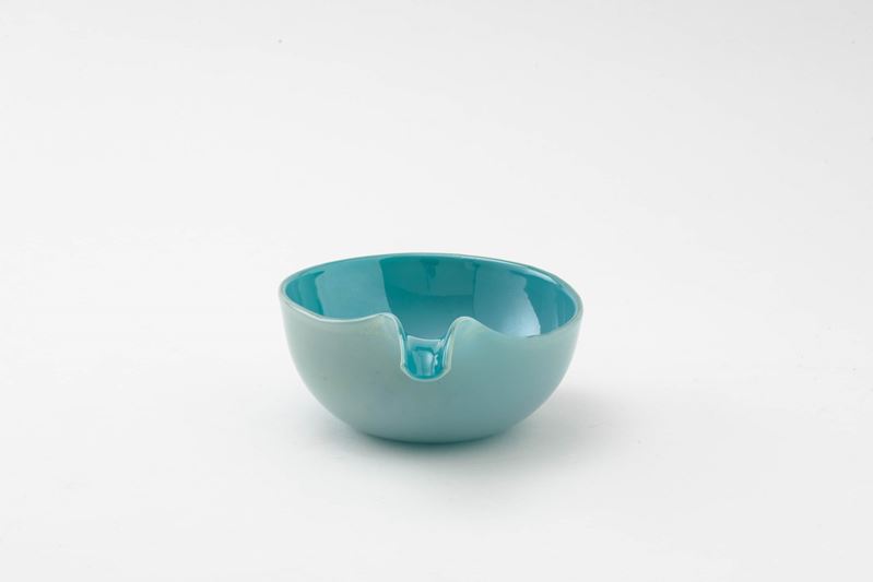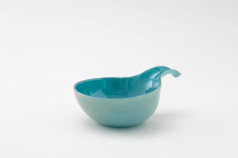 Coppa con ansa a versatoio in vetro soffiato Alga con decoro di foglia oro sommersa
