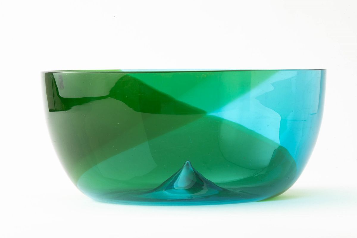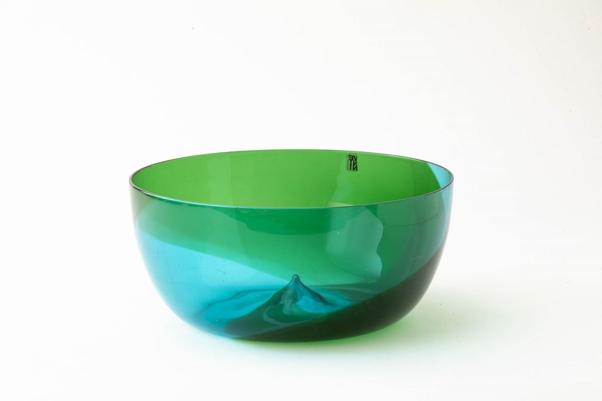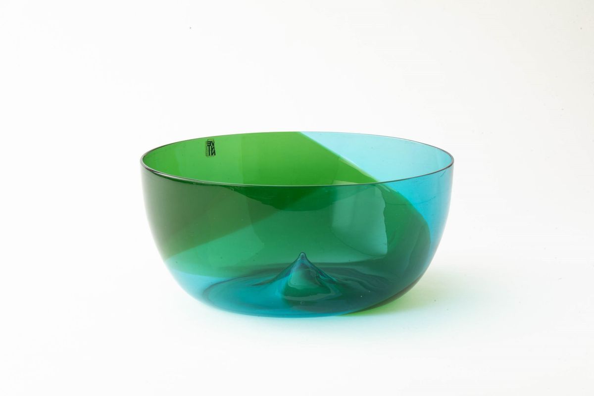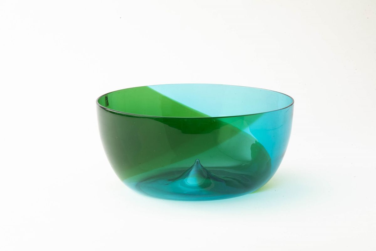 Coppa serie Coreani in vetro soffiato con decoro di fasce policrome incrociate