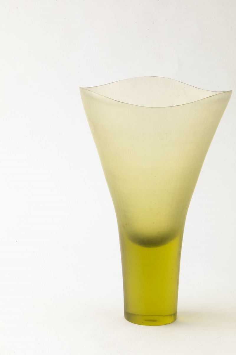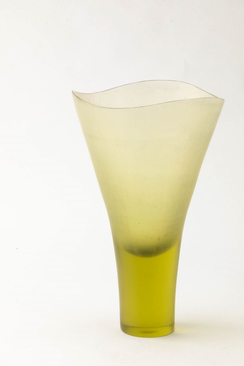 Vaso conico serie Battuti in vetro soffiato verde marcio con superficie interamente lavorata alla mola