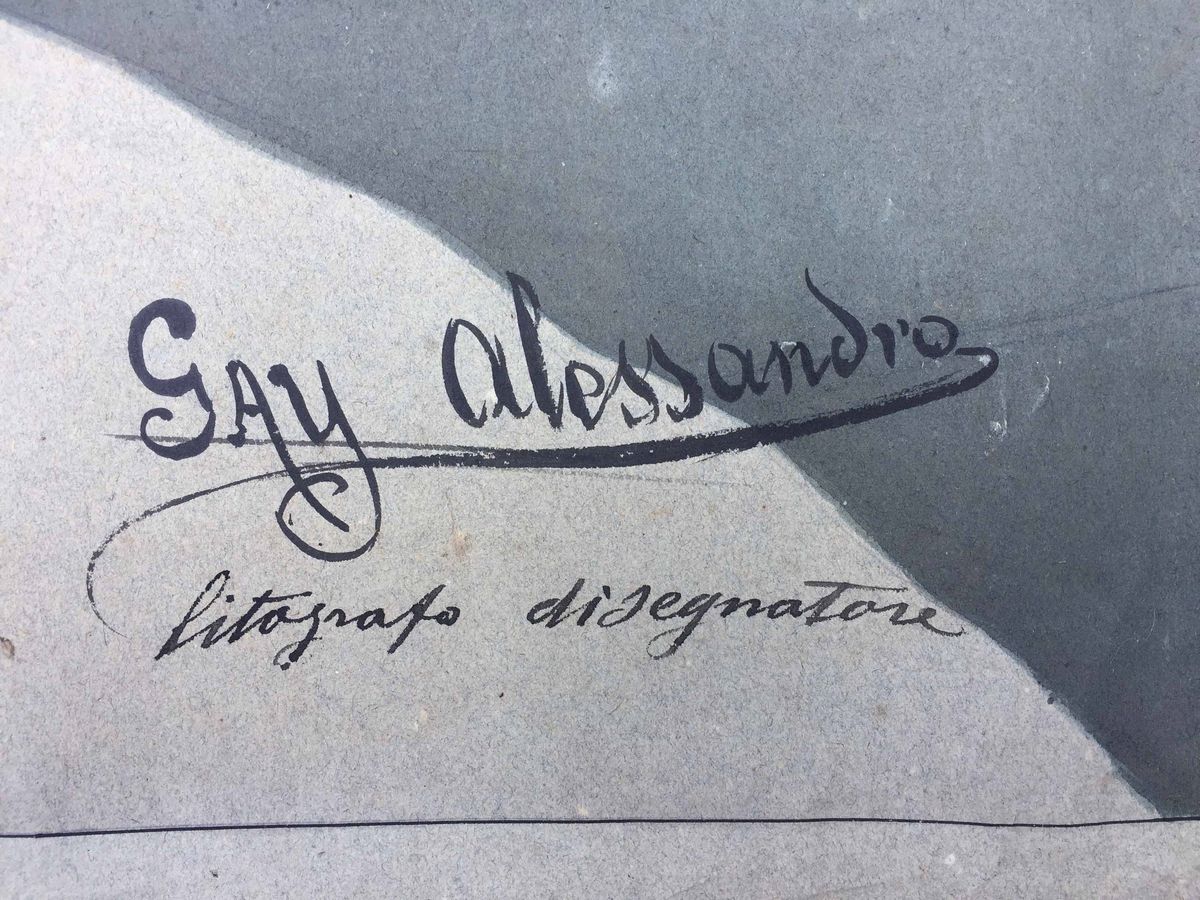Alessandro Gay (XIX secolo) Grande disegno firmato, Dedalo e Icaro, imponente acquerello neoclassico Dedalo mette le ali [..]