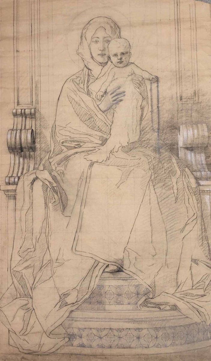 Alessandro Gay (XIX secolo) studio di grandi dimensioni Madonna in trono con Bambino