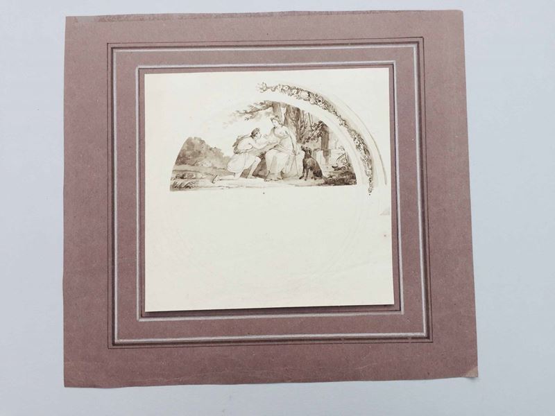 Inchiostro e acquarello bruno su carta Misure foglio: cm 17 x 17,5