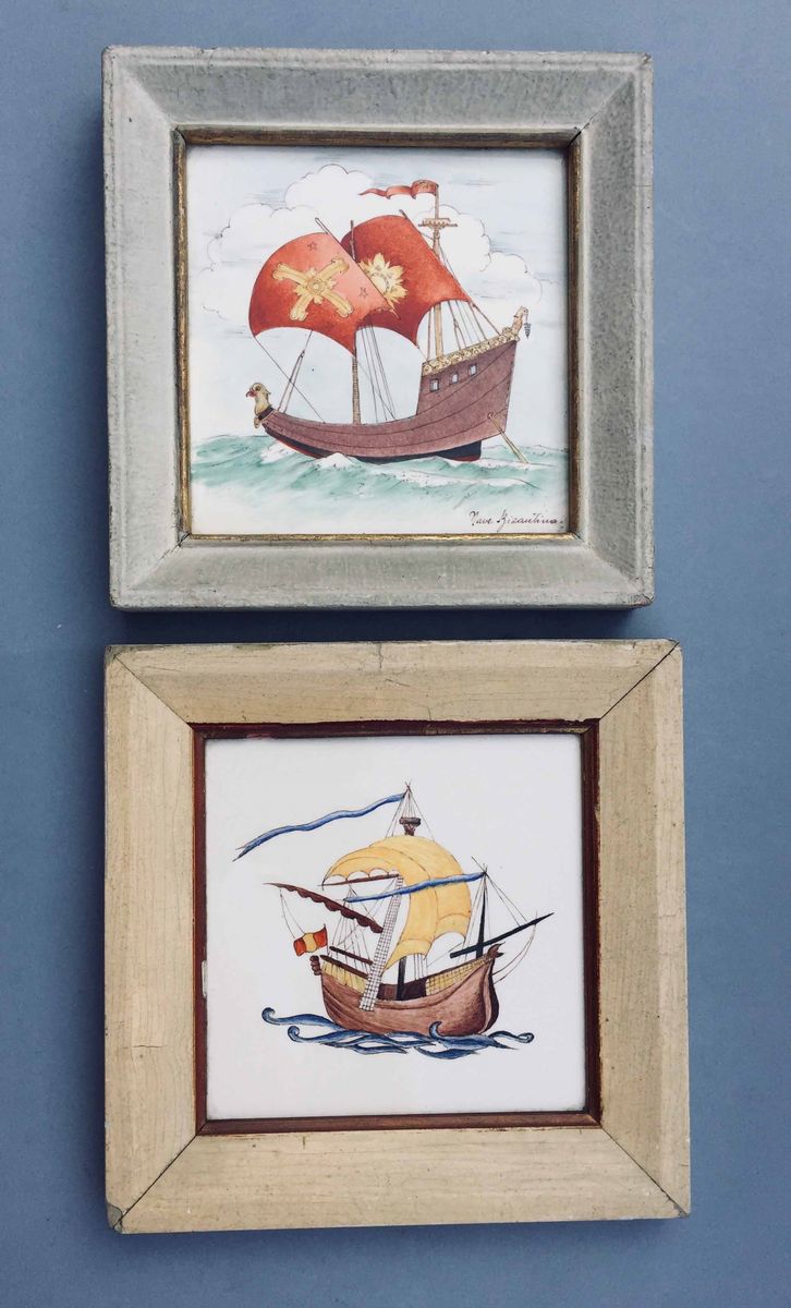 raffiguranti antiche navi Entrambe in cornice. Misure piastrelle cm 15x15